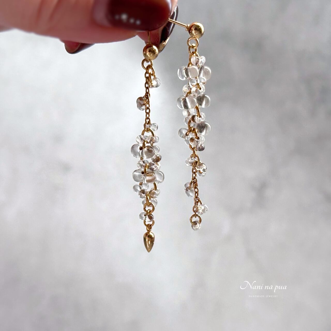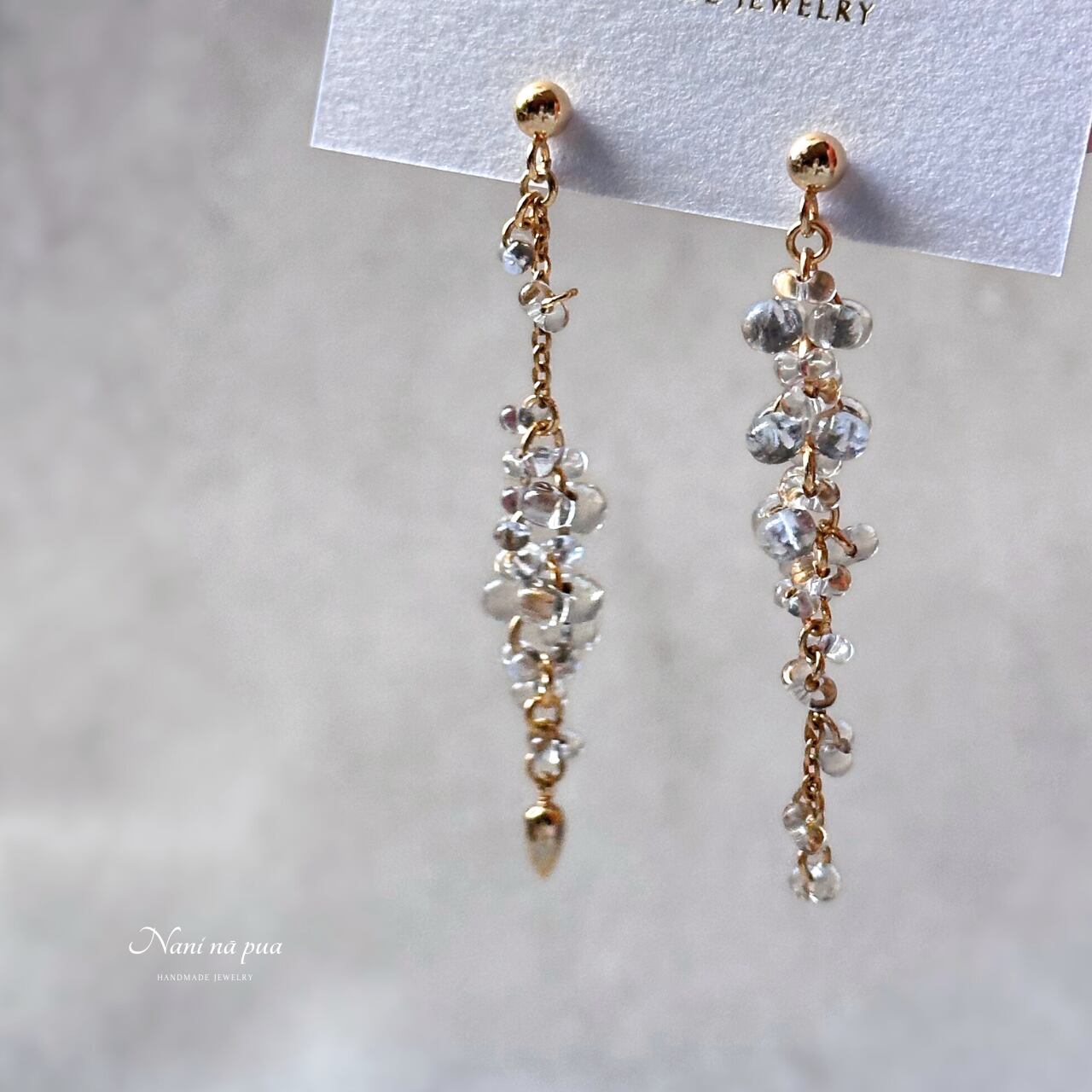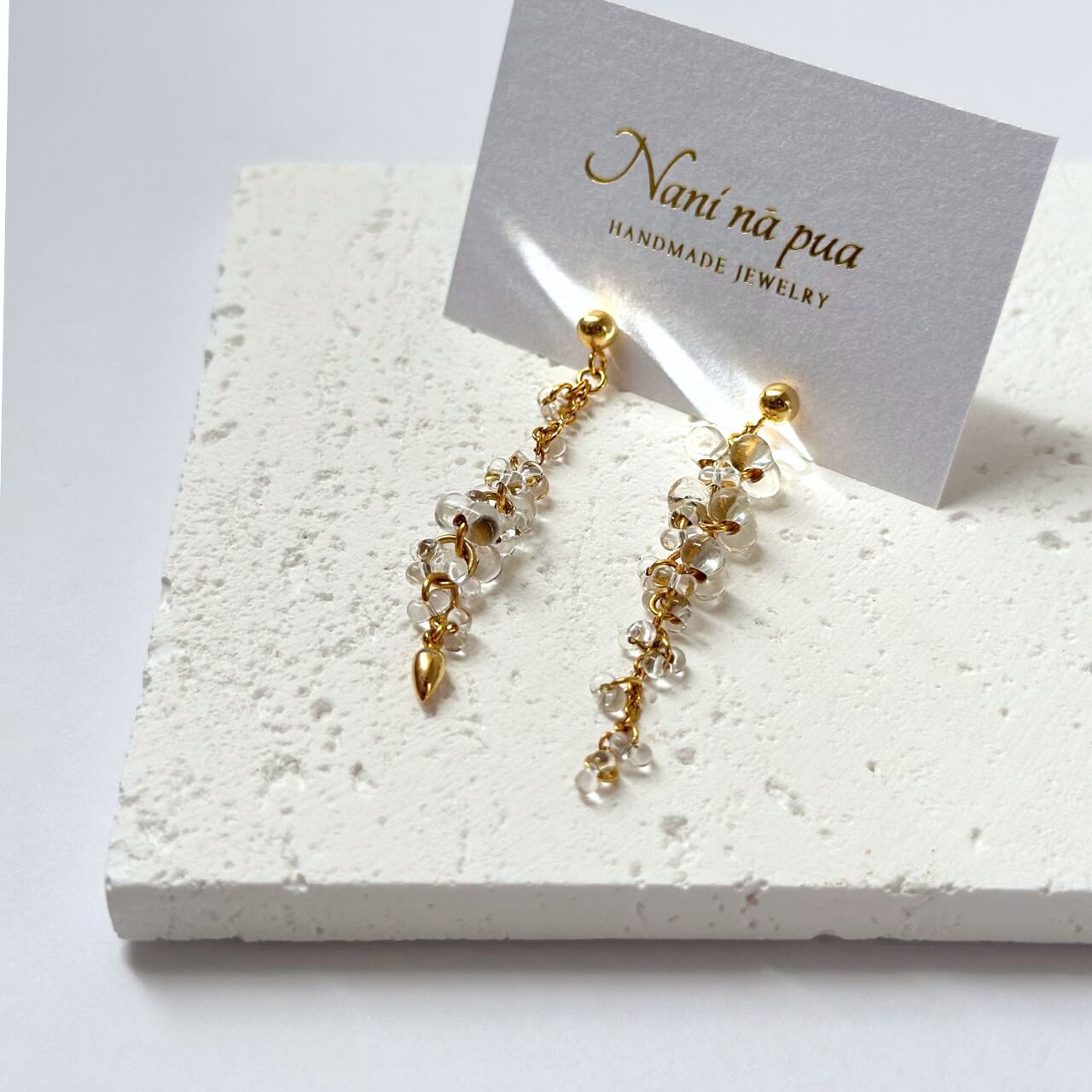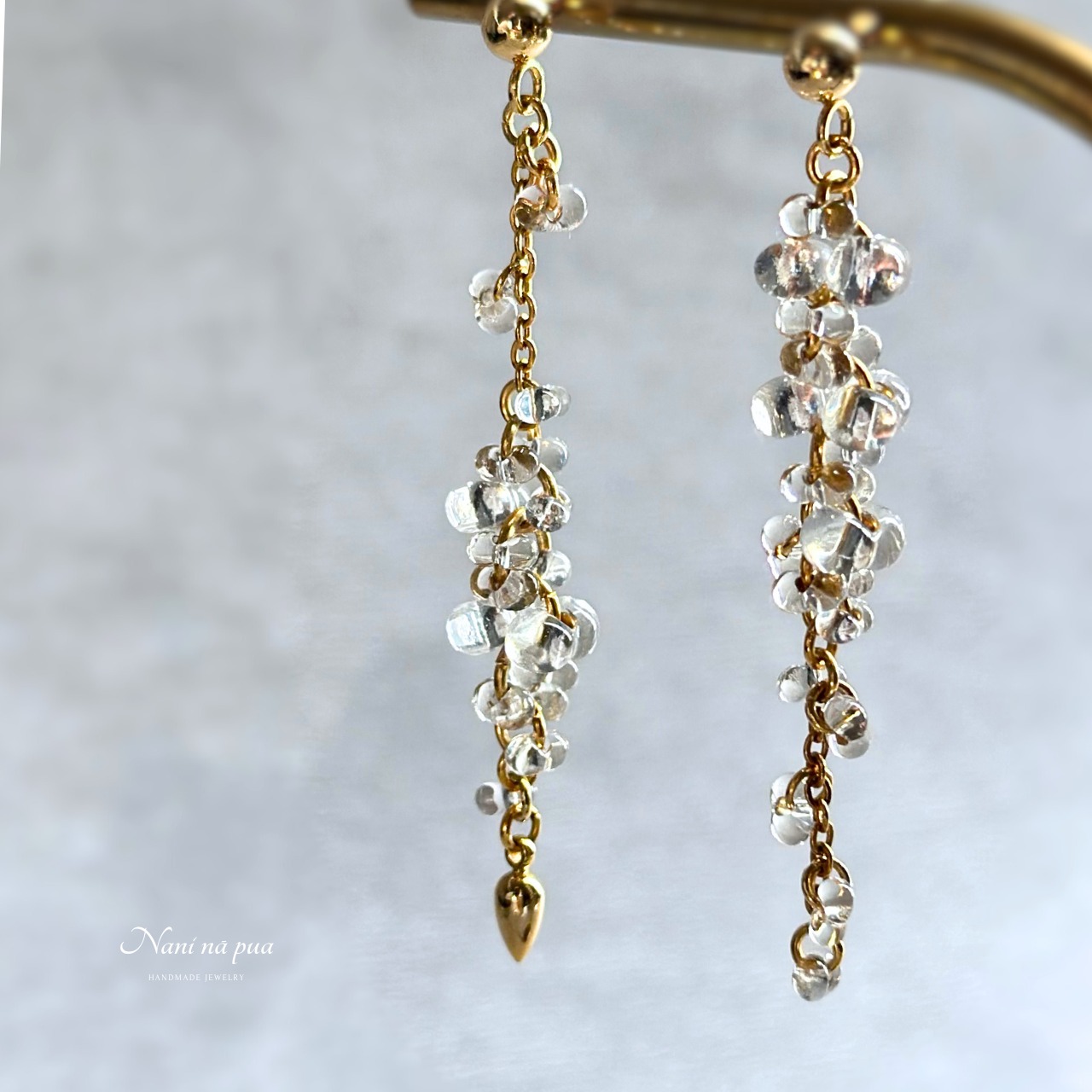 チェコガラス バブルピアス/イヤリング(ゴールド)| 透明感 軽量 上品 揺れる 大人上品 華やか | サージカルステンレス ニッケルフリー